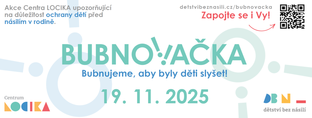 Centrum LOCIKA pořádá akci Bubnovačka, která se koná 19. listopadu 2025. Tato událost je zaměřena na zvýšení povědomí o ochraně dětí před násilím v rodině. V rámci akce se budou účastníci věnovat hudbě a bubnování, čímž chtějí podpořit důležitost tohoto tématu. Cílem je, aby byly děti slyšeny a jejich hlasy nebyly ignorovány.